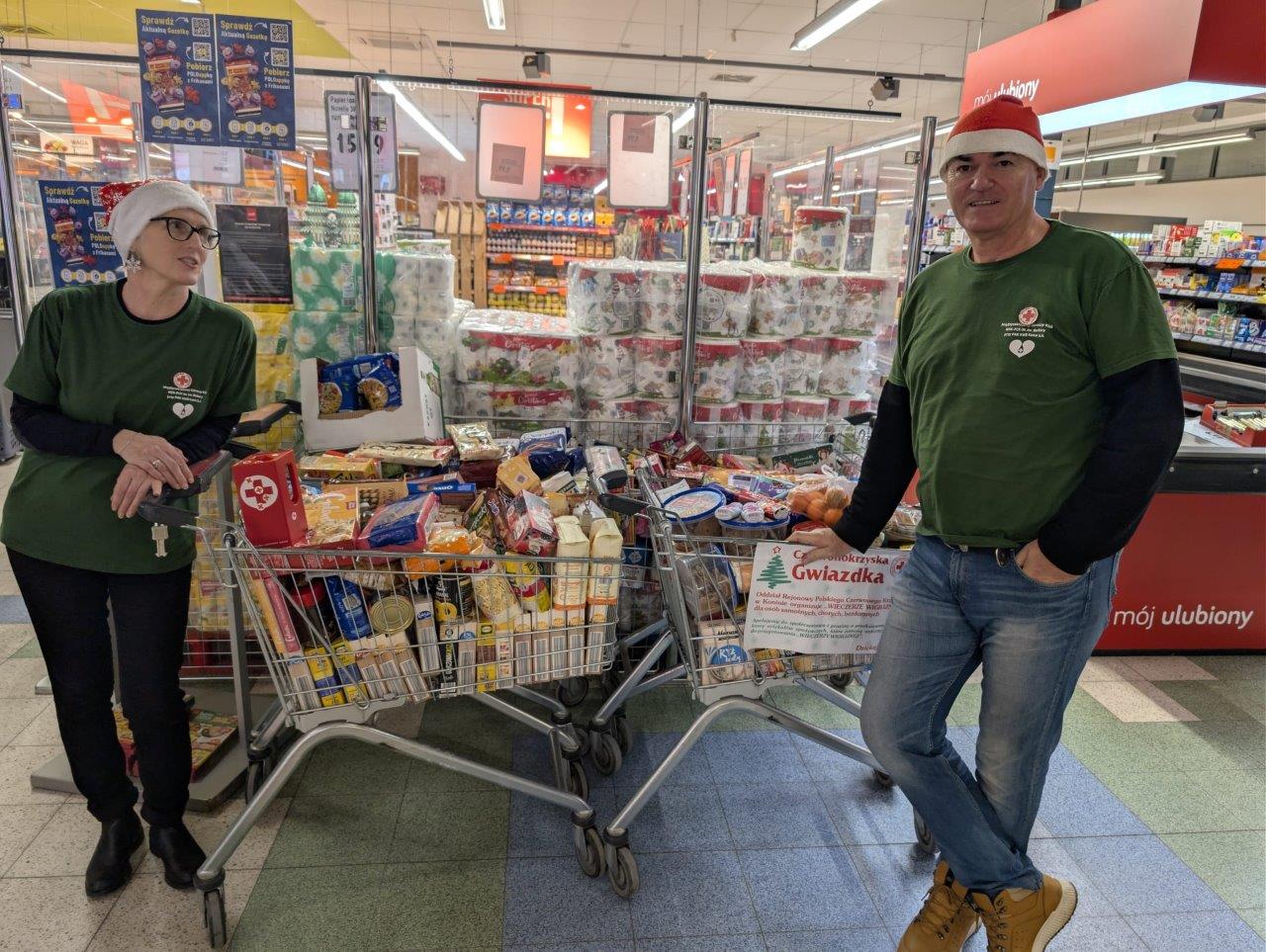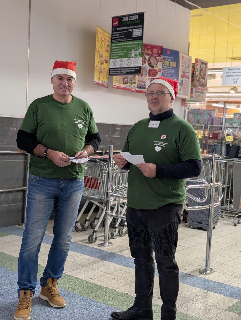Następnego dnia przedstawiciele klubu, w pięknych mikołajowych czapkach, wzięli udział w organizowanej przez PCK zbiórce żywności na wieczerzę wigilijną dla samotnych, chorych i bezdomnych.